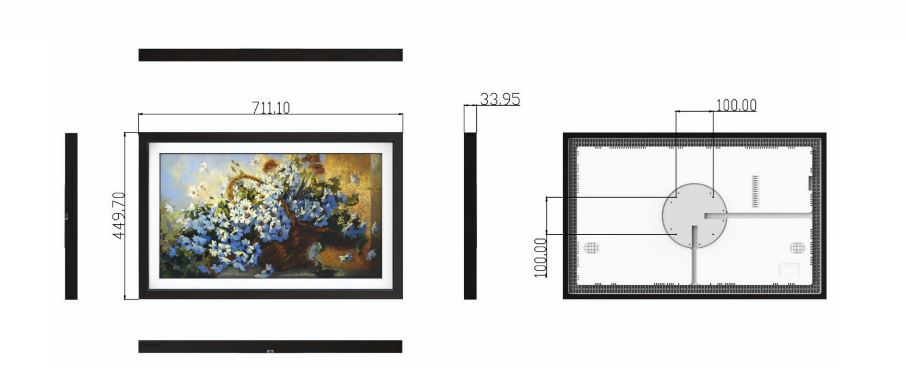 Display includes: Flush wall mount, AC cord and is controlled with Vieunite Pro Connect Mobile app for Android or IOS.